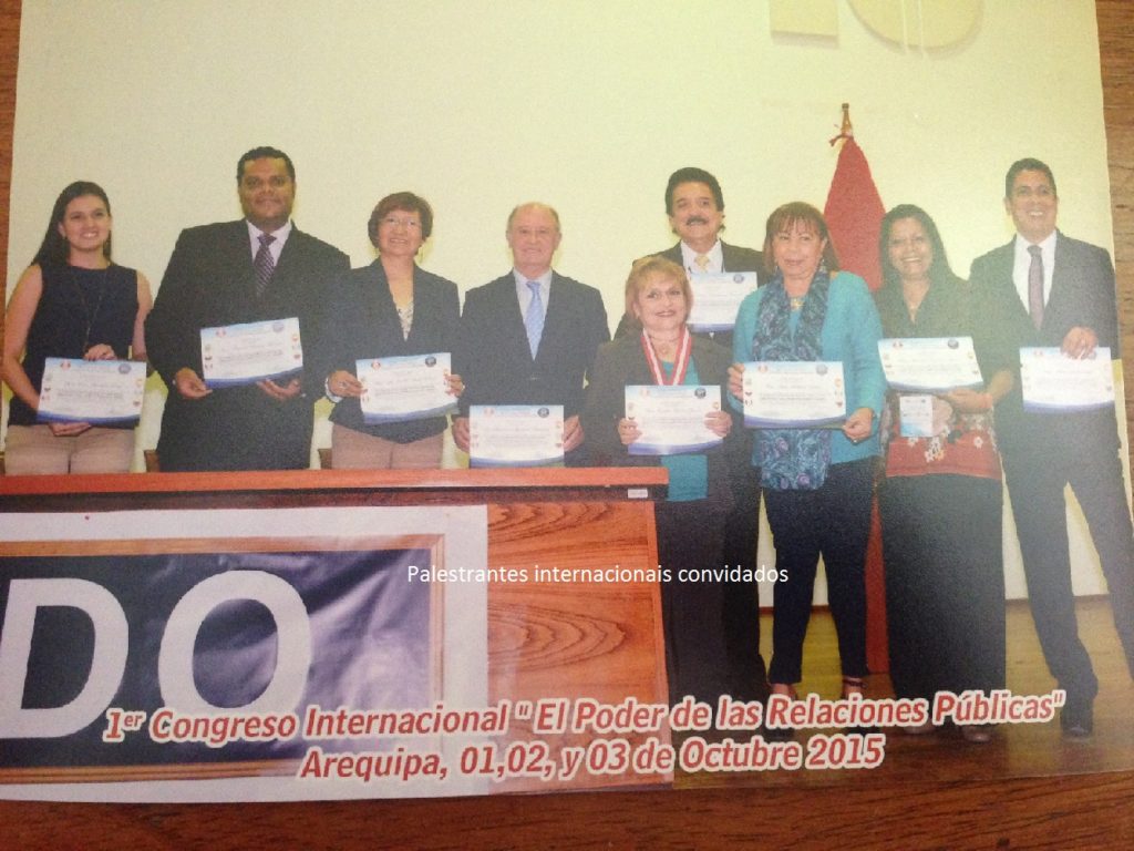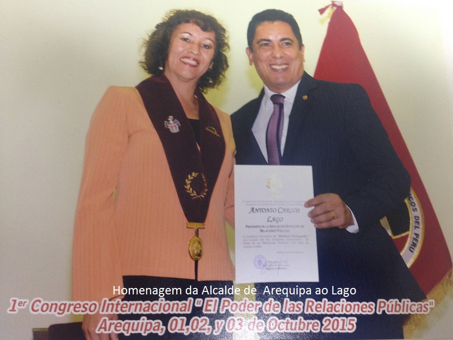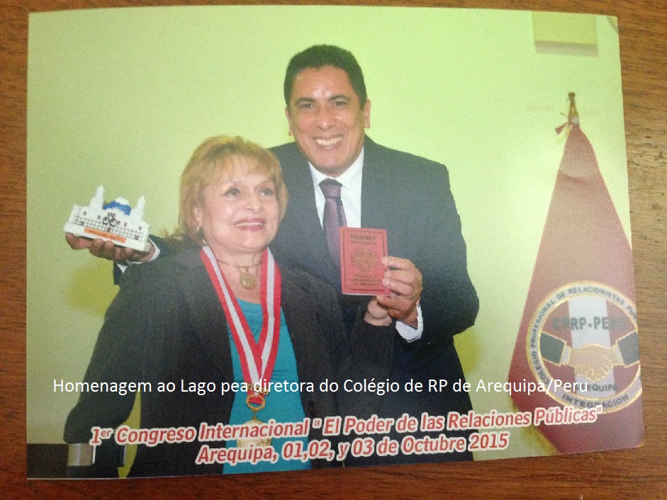 Lago, também encerrou o 1º Congresso Internacional de Relações Públicas que foi realizado na cidade de Arequipa, no Peru, nos dias 1, 2 3 de outubro. Além de falar do seu trabalho no Ibama como Relações Públicas e Analista Ambiental, foi homenageado pelo Alcalde de Arequipa, Alfredo Zegarra Tejada, recebendo a condição Honorífica de “Visitante Distinguido” por ocasião da realização do congresso na cidade-sede do evento e pela sua presença como conferencista internacional.