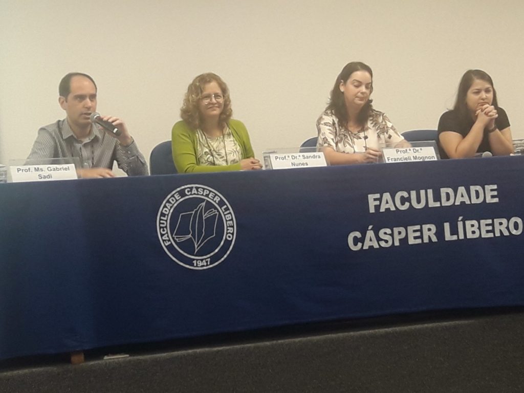 Painel com docentes: Gabriel Sadi(Argentina), Sandra Nunes(UFAL), Franciele Mongnon(UFPR) e Juliane Martins (ECA/USP)