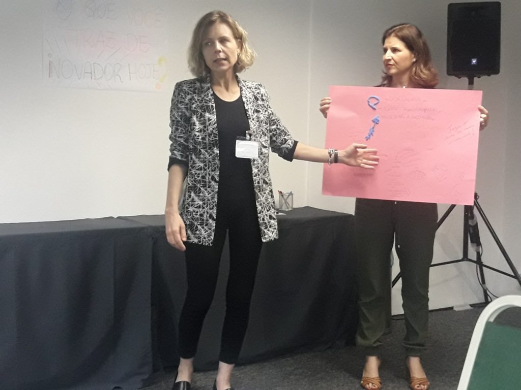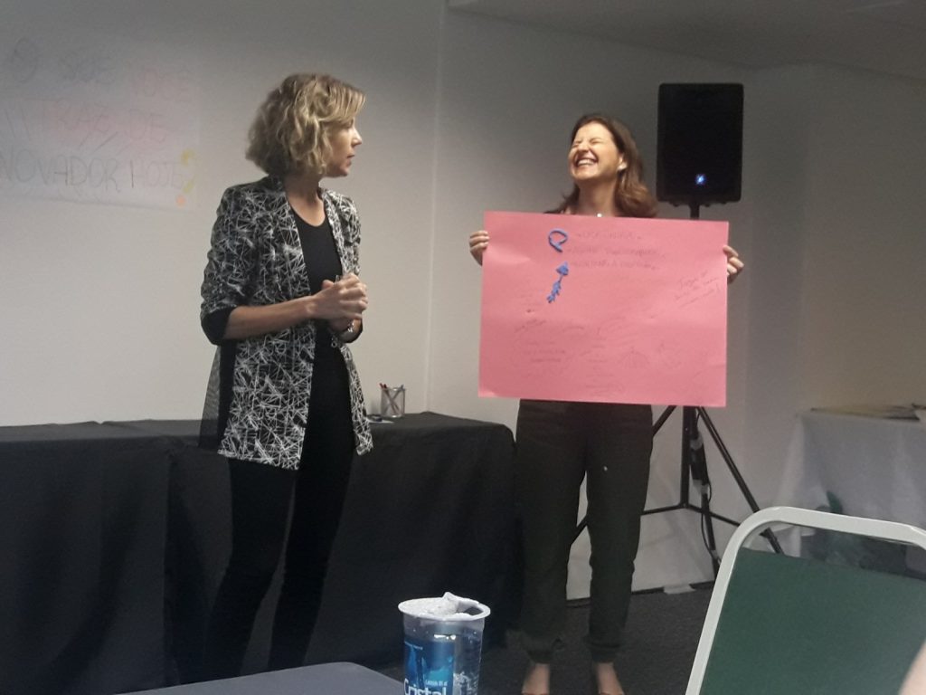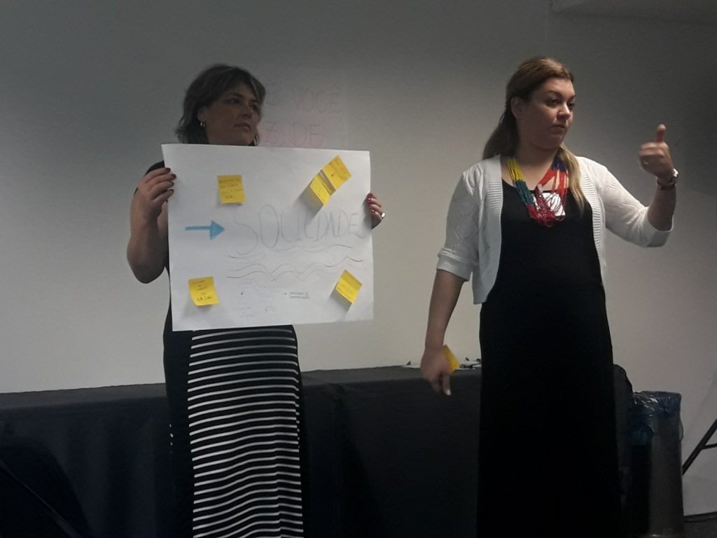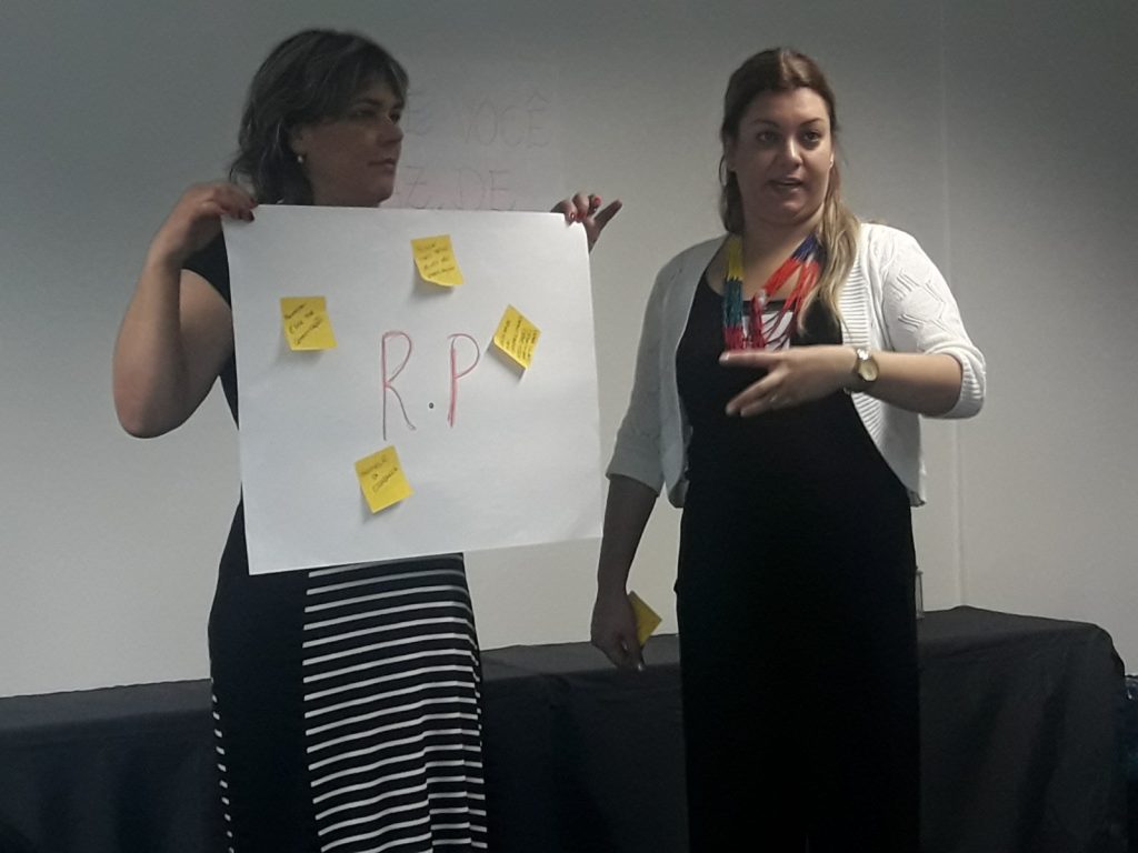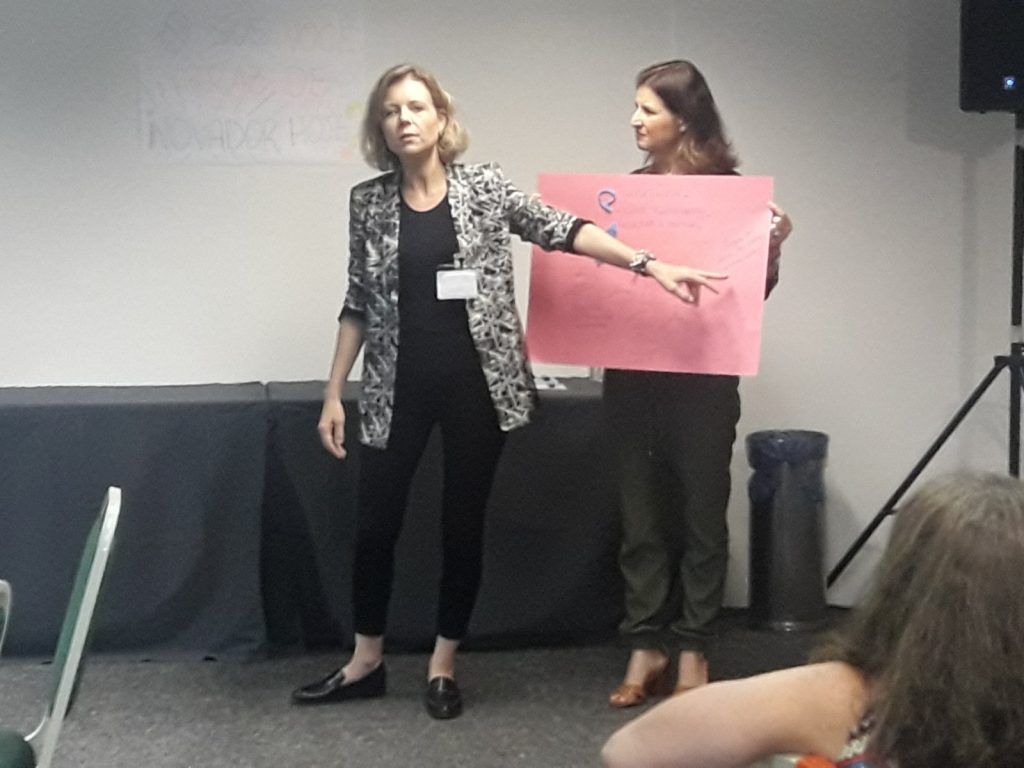 A descontração das conselheiras Tatiana e Marilísia na apresentação do grupo delas