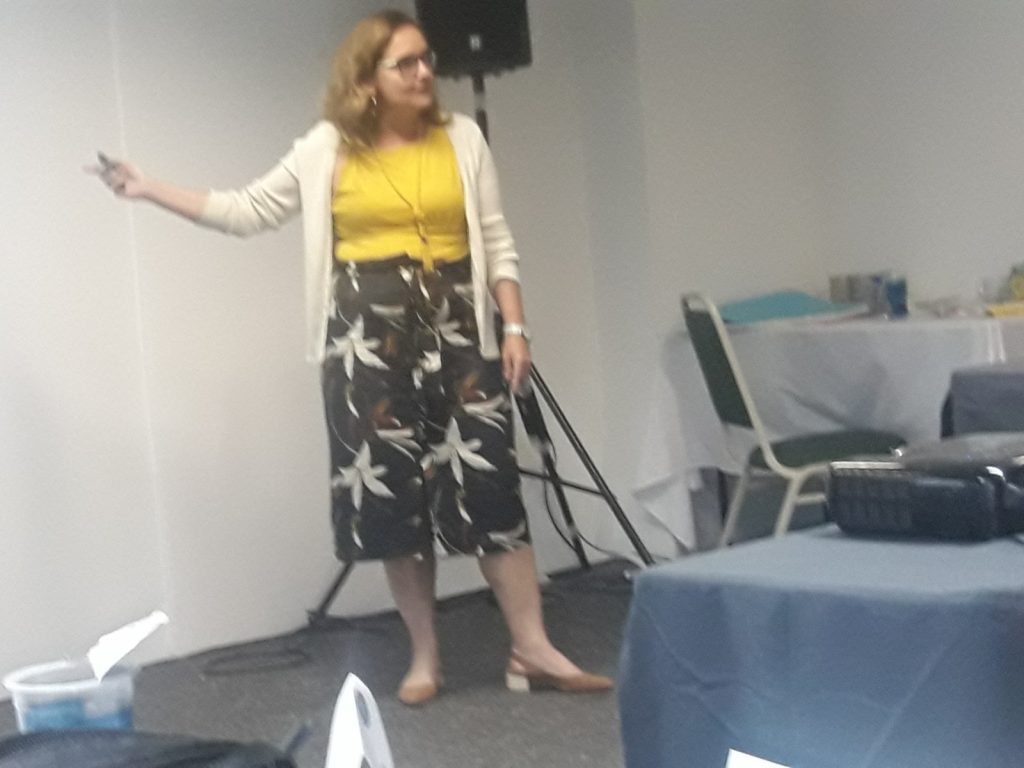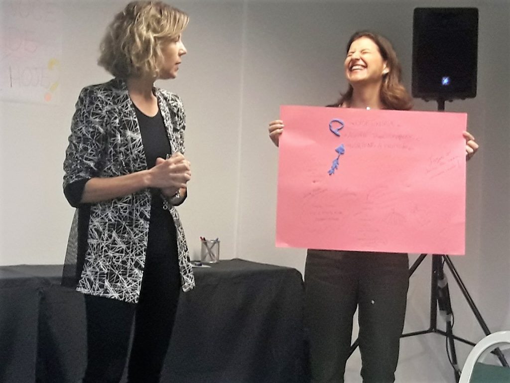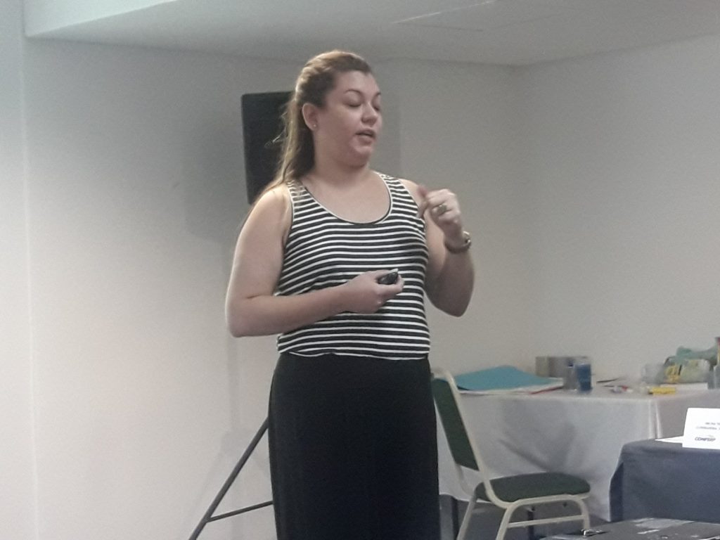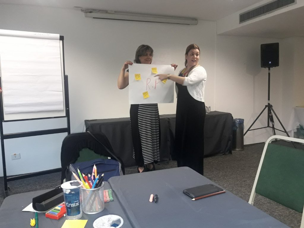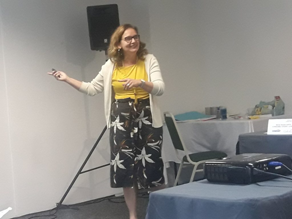A descontração das conselheiras Tatiana e Marilísia na apresentação do grupo delas