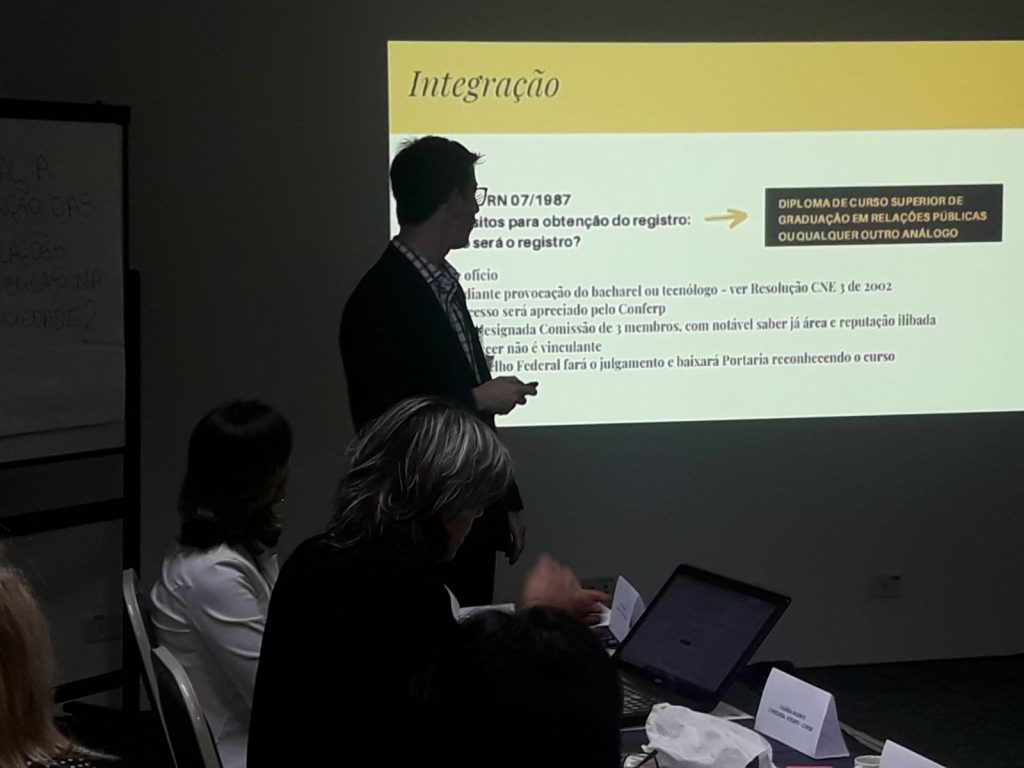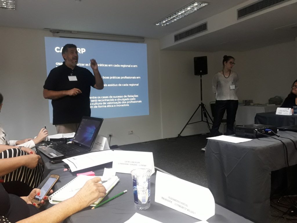 Antes de iniciar os trabalhos, foi feita uma dinâmica entre os conselheiros regionais e federais. Em seguida todos foram distribuídos em grupos para a realização do Workshop: Reflexão sobre a função das Relações Públicas para a sociedade. A avaliação foi muito positiva e a proposta dos resultados foram sistematizadas para que possam ser incluídas no planejamento estratégico do conselho que está sendo consolidado e ajustado para ser compartilhado com todos os Conselhos Regionais.