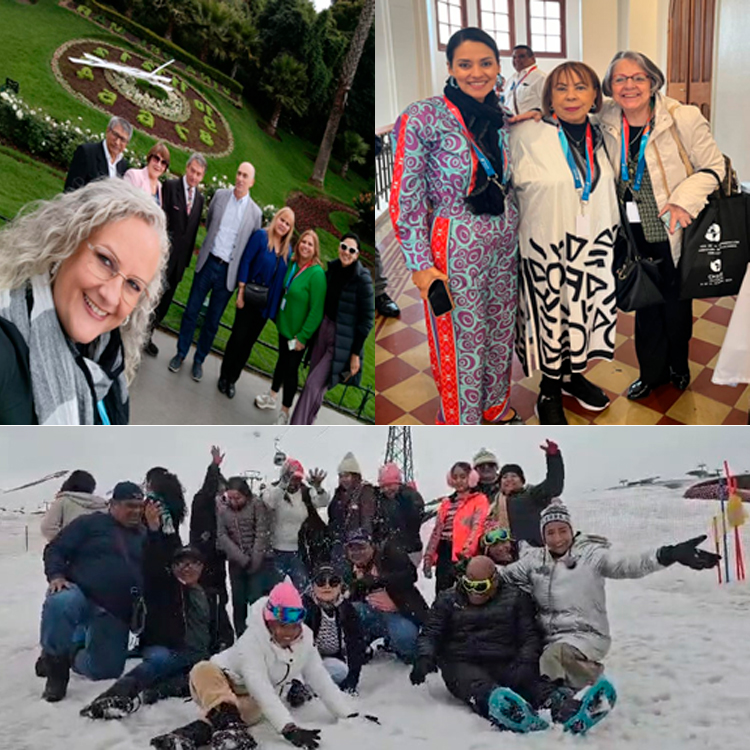 Mônica Soteras (Argentina), acompanhada do esposo, recebeu o segundo Chasqui de Prata das mãos da Presidente da Confiarp, Carmen Chirinos. A homenageada pousou para um registro ao lado do Vice-Presidente Cristian, do Lago, das ex-presidentes da Confiarp Maritza (Panamá), e Neysi (México)ao lado da presidente da Confiarp.