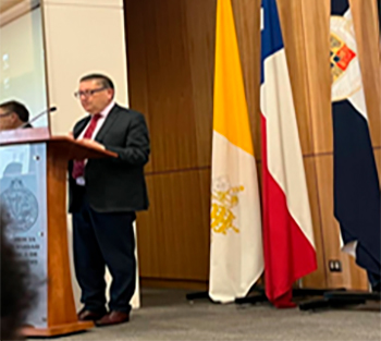 Na solenidade de abertura houve palavras especiais do Reitor da Pontifícia Universidade Católica de Valparaiso (na foto com Lago, Conselheiro Permanente e Carmen Chirinos, presidente da Confiarp), que cedeu as instalações para a realização do congresso.